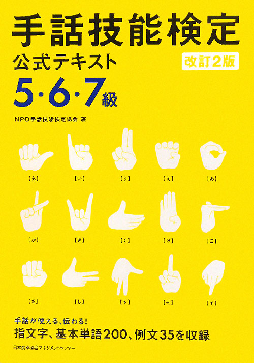 指文字の練習から手話技能検定5・6・7級をフォローする公式テキスト。試験範囲改訂に合わせた単語の追加・削除などに対応。