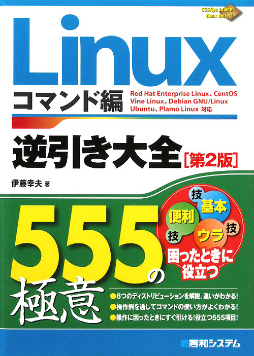 『Linux逆引き大全555の極意 コマンド編』第2版 伊藤 幸夫/著 秀和システム 2011.3(所蔵館:オーテピア高知図書館 請求記号:4Y/007.634/イト/ 資料コード:1106264037)