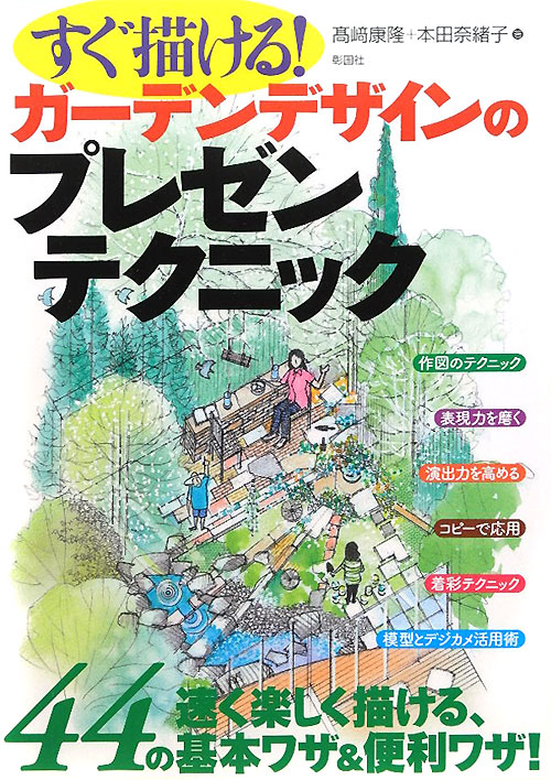 『すぐ描ける!ガーデンデザインのプレゼンテクニック 速く楽しく描ける、44の基本ワザ&便利ワザ!』 高崎 康隆/著, 本田 奈緒子/著 彰国社 2012.4(所蔵館:オーテピア高知図書館 請求記号:/629.75/タカ/ 資料コード:1106862863)