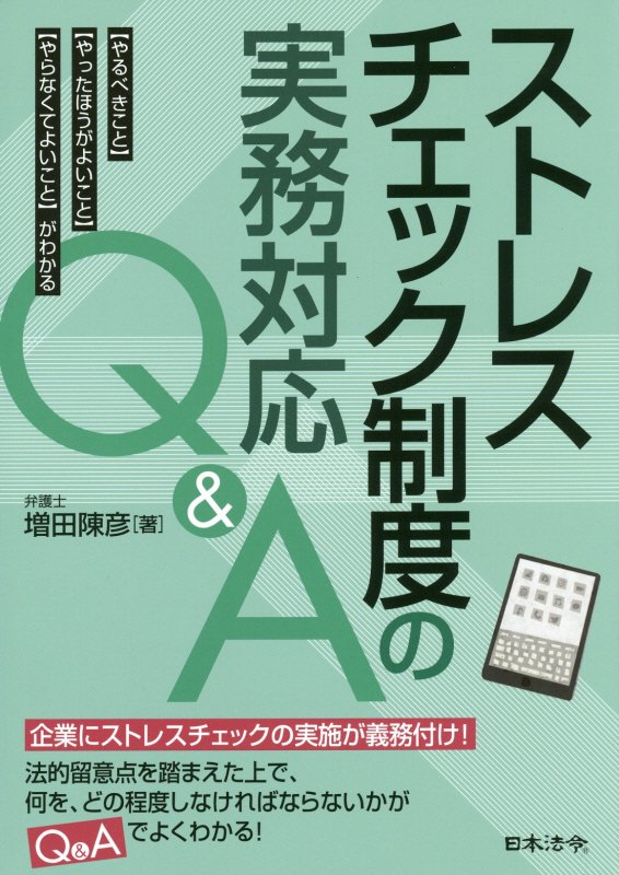 『ストレスチェック制度の実務対応Q&A <やるべきこと><やったほうがよいこと><やらなくてよいこと>がわかる』 増田 陳彦/著 日本法令 2015.10(所蔵館:オーテピア高知図書館 請求記号:4H/498.8/マス/ 資料コード:1108117902)