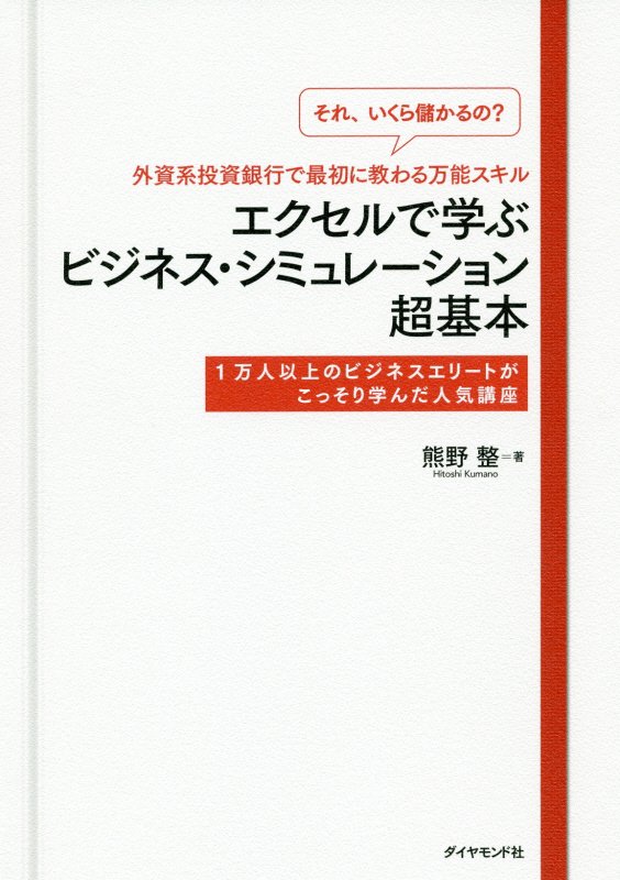 『エクセルで学ぶビジネス・シミュレーション超基本 「それ、いくら儲かるの?」外資系投資銀行で最初に教わる万能スキル』 熊野 整/著 ダイヤモンド社 2019.2(所蔵館:オーテピア高知図書館 請求記号:4Y/007.6384/クマ/ 資料コード:1109375111)