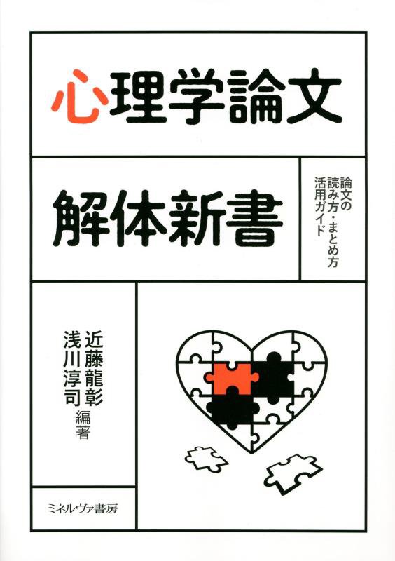 『心理学論文解体新書 論文の読み方・まとめ方活用ガイド』 近藤 龍彰/編著, 浅川 淳司/編著 ミネルヴァ書房 2022.3(所蔵館:オーテピア高知図書館 請求記号:4H/140.7/シン/ 資料コード:1111585525)