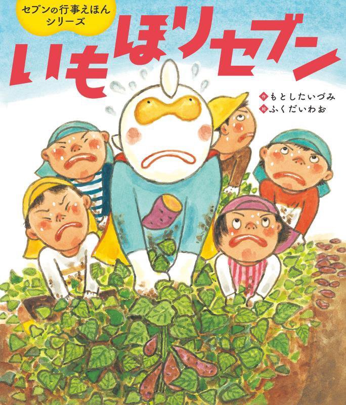 子どもたちがいもほりをしている畑に、いもほりセブンがあらわれ…。スイートポテトの作り方、さつまいものあみだくじも掲載。ジャケットそでに「いろいろなさつまいも」、レシピ動画のQRコードあり。