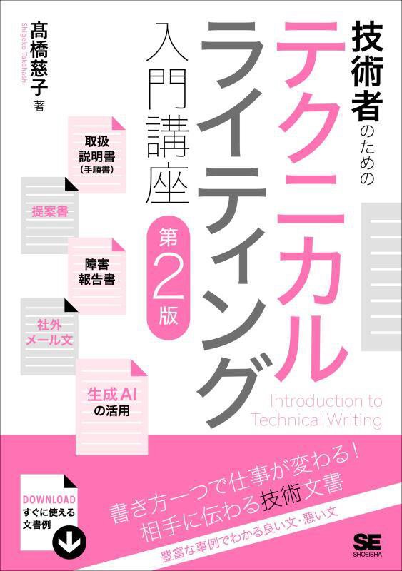 『技術者のためのテクニカルライティング入門講座』第2版 高橋 慈子/著 翔泳社 2024.12(所蔵館:オーテピア高知図書館 請求記号:/507.7/タカ/ 資料コード:1112652571)