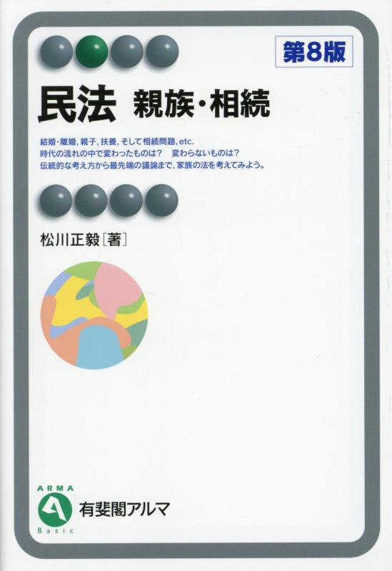 『民法 親族・相続』(有斐閣アルマ)第8版 松川 正毅/著 有斐閣 2025.3(所蔵館:オーテピア高知図書館 請求記号:/324.6/マツ/ 資料コード:1112651979)