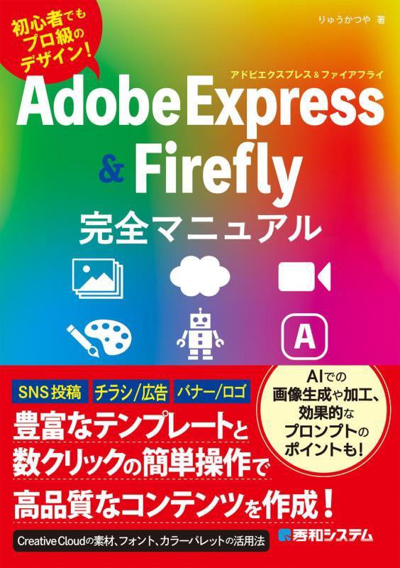 『Adobe Express & Adobe Firefly完全マニュアル 初心者でもプロ級のデザイン!』 りゅうかつや/著 秀和システム 2025.5(所蔵館:オーテピア高知図書館 請求記号:4Y/007.642/リユ/ 資料コード:1112693633)