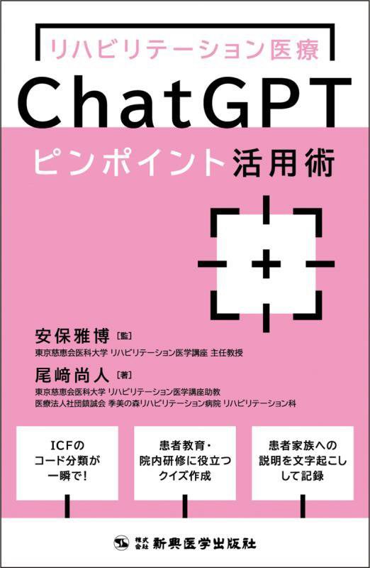 『リハビリテーション医療ChatGPTピンポイント活用術』 尾崎 尚人/著, 安保 雅博/監修 新興医学出版社 2025.7(所蔵館:オーテピア高知図書館 請求記号:4H/494.78/オサ/ 資料コード:1112702756)