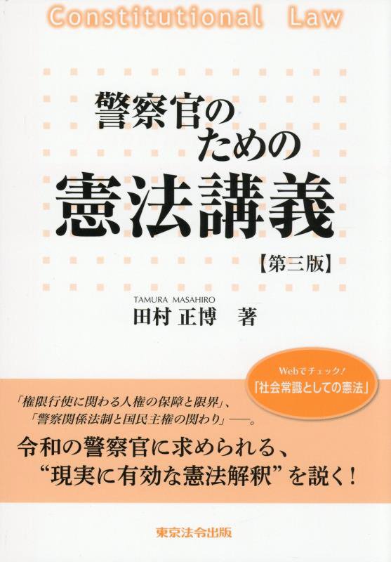 警察官が職務上必要とする憲法知識について解説。重要判例や注目判例、憲法の理念に沿った実務運用のあり方などを綴ったコラムも掲載する。「社会常識としての憲法」(PDFデータ)にアクセスできるQRコード付き。
