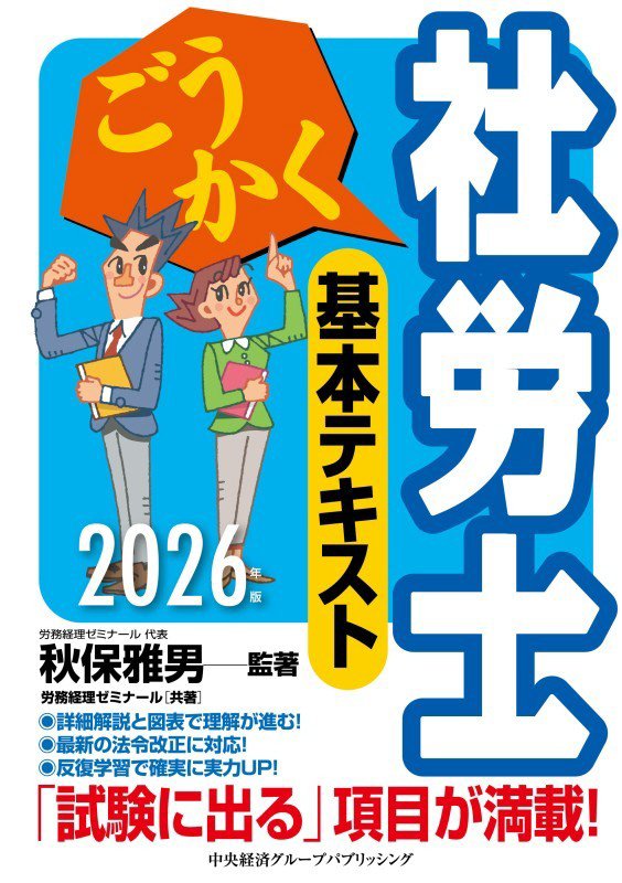 『ごうかく社労士基本テキスト 2026年版』 秋保 雅男/監著, 労務経理ゼミナール/共著 中央経済グループパブリッシング 2025.11(所蔵館:オーテピア高知図書館 請求記号:4W/364.3/コウ/ 資料コード:1112808140)