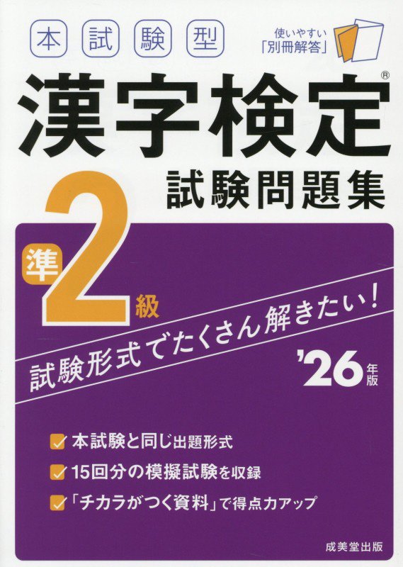『本試験型漢字検定準2級試験問題集 '26年版』 成美堂出版編集部/編著 成美堂出版 2025.12(所蔵館:オーテピア高知図書館 請求記号:T/811.2/ホン/ 資料コード:1112836729)