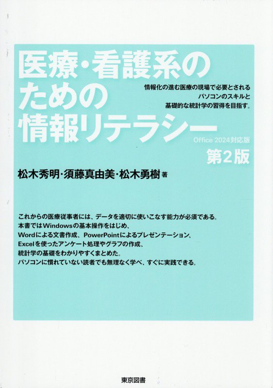 『医療・看護系のための情報リテラシー』第2版 松木 秀明/著, 須藤 真由美/著 , 松木 勇樹/著 東京図書 2025.12(所蔵館:オーテピア高知図書館 請求記号:4H/498/イリ/ 資料コード:1112848104)