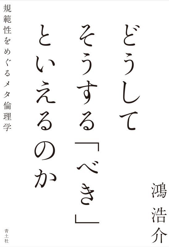 『どうしてそうする「べき」といえるのか 規範性をめぐるメタ倫理学』 鴻 浩介/著 青土社 2025.12(所蔵館:オーテピア高知図書館 請求記号:/150/ヒシ/ 資料コード:1112828296)