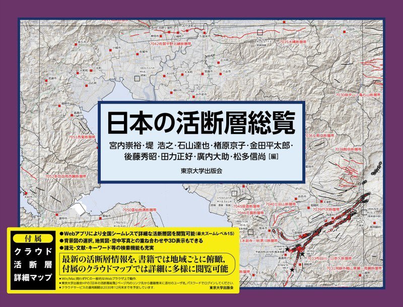 『日本の活断層総覧』 宮内 崇裕/編, 堤 浩之/編 , 石山 達也/編 東京大学出版会 2025.12(所蔵館:オーテピア高知図書館 請求記号:/454.4/ニホ/ 資料コード:1112749872)