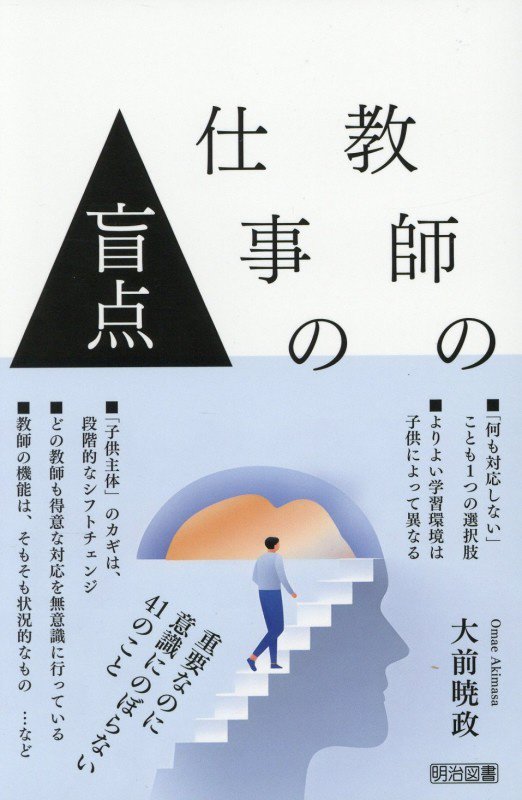 『教師の仕事の盲点 重要なのに意識にのぼらない41のこと』 大前 暁政/著 明治図書出版 2026.2(所蔵館:オーテピア高知図書館 請求記号:/374.3/オオ/ 資料コード:1112847759)