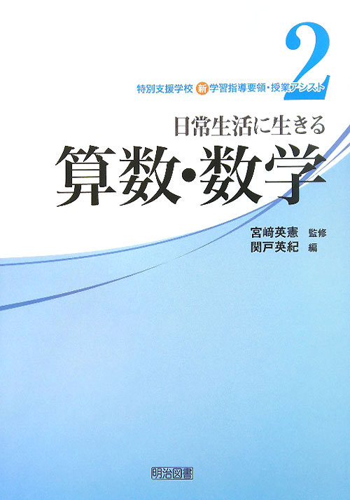 『特別支援学校新学習指導要領・授業アシスト 2』( 日常生活に生きる算数・数学) 宮崎 英憲/監修 明治図書出版 2011.4(所蔵館:オーテピア高知図書館 請求記号:4W/378/トク/2 資料コード:1106358045)